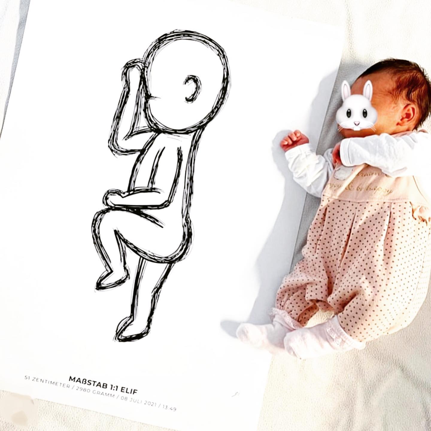 Geburtsposter für Ihr Baby im Maßstab 1:1? Babydruk bietet Ihnen eine einzigartige und zeitlose Illustration, die an die tatsächliche Größe Ihres Babys bei der Geburt angepasst ist.